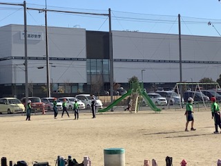 育成会会長の木田さんが凧作りに携わってくださり、学級の連凧揚げを行うことができました。