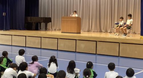 体育館中に響く大きな声で返事をし、堂々とした態度で発表できました。