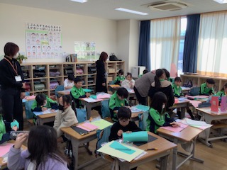 最後にサンタさんからカードのプレゼントをもらって、児童達は、大満足の表情で教室に帰っていきました。