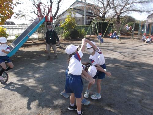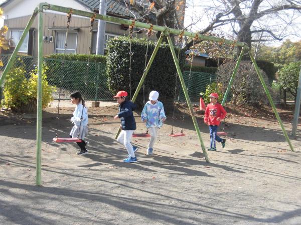 寒くなってきても休み時間は、友達や先生と元気に外遊び。一輪車、ブランコ、砂遊び・・・。15分もあれば次から次へといろいろな遊びに取り組んで楽しんでいました。