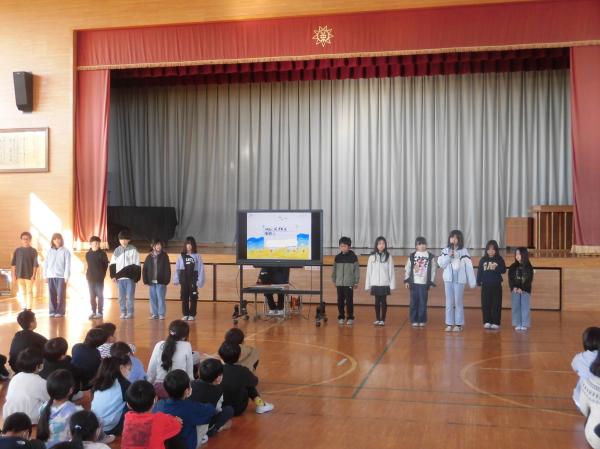 友達や周囲の人への思いやりの心、仲よく生活していこうとする心を養うために集会が行われました。全校児童が自分で考えたメッセージを発表し、その思いを確かなものにしました。