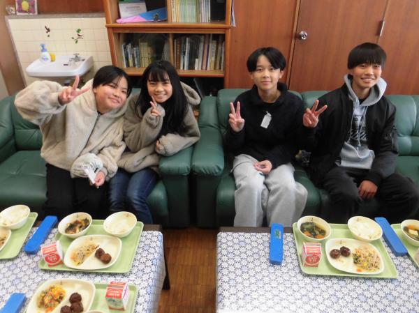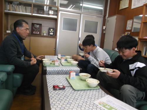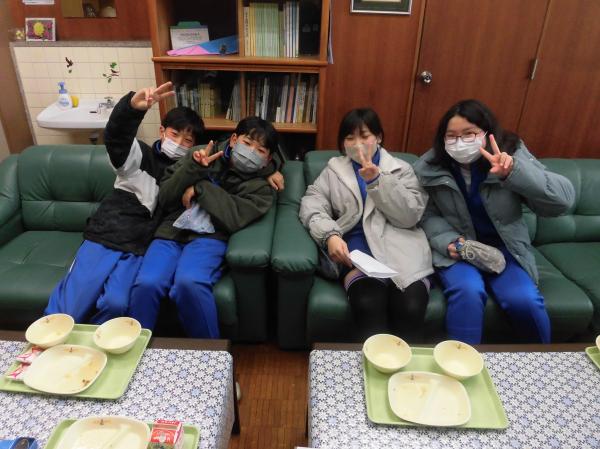 校長先生から卒業間近の6年生に招待状が届きました。3~4人ずつ校長室で楽しく会食をしています。