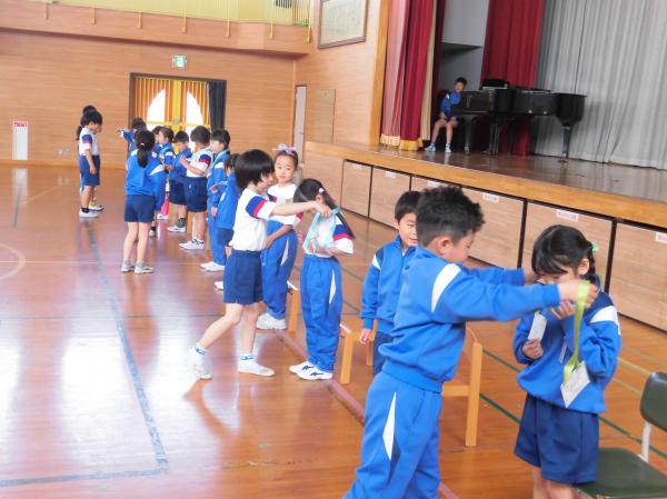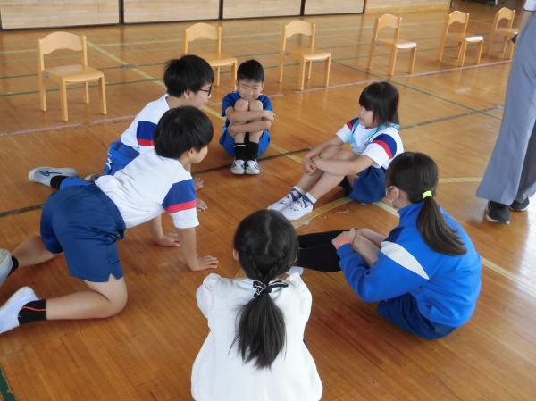 よい姿勢でしっかり担任の先生の話を聞けていて立派でした。休み時間は、友達と仲よく遊んでいました。