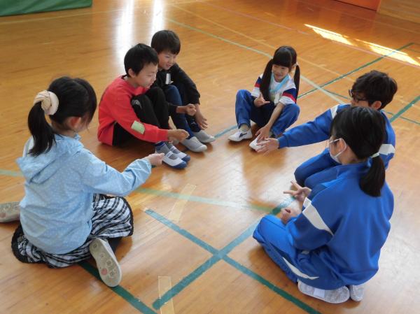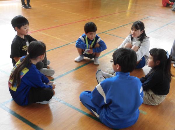 休み時間は、学年のわくを超えて全校児童が仲よく遊んでいます。1年生は上級生から「一緒に遊ぼう」とたくさん声を掛けられていました。
