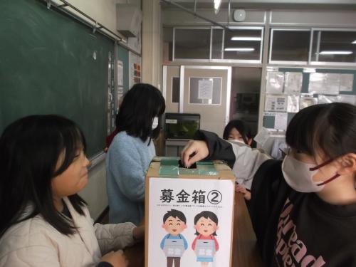 集会委員が赤い羽根募金を呼び掛けました。多くの児童が募金してくれてうれしそうでした。