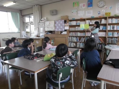 学校司書の先生から図書室の利用の仕方などについて説明がありました。読み聞かせもしていただきました。