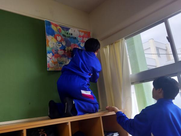 今年度もあと1日の今日、1学年では学年レクリエーションとしてクラス対抗ドッヂビー大会を行いました。ドッヂビーとは、ドッヂボールをボールの代わりにフリスビーを使って行う競技です。ボールと違ってあたっても痛くはありませんが、変な曲がり方をするのでキャッチは難しいところもあります。また、うまく投げないと全然違う方向へ飛んで行ってしまい、案外難しい。みんな、キャーキャー騒ぎながら、今年度を楽しく締めくくりました。激闘の末、優勝は5組。おめでとうございます。