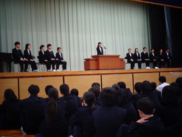 4月8日(水)、令和8年度新任式・始業式が行われました。 新しい学年、新しいクラスで、生徒たちは緊張した様子でしたが、新たに伊奈中の加わった先生方を温かい拍手で迎えました。 始業式では、2、3年生代表生徒が新年度の抱負を発表してくれました。また校長先生からは「いろいろな価値観を大切にしてほしい。」「“ありがとう”を大切にし、笑顔溢れるクラスにしてほしい」という話がありました。 今年度の伊奈中学校を支える2、3年生の表情から、さらに素晴らしい学校となることが期待できました。