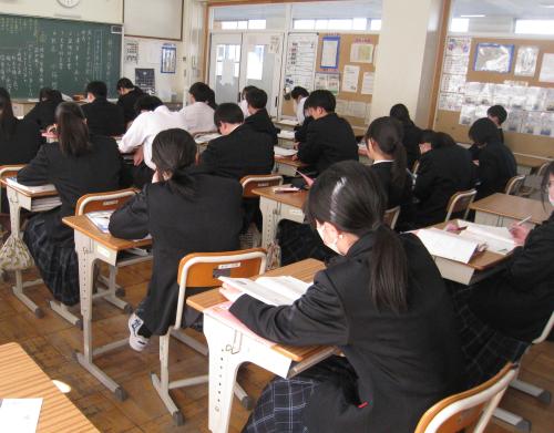 県立高校入試に向けた最後の実力テストとなり、教室には真剣な空気が広がっていました。