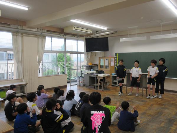 今日は、3年生がクラブ見学をしました。今日をとても楽しみにしていたので、どのグループも意気揚々と見学に出発。イラスト・手芸・工作クラブ、室内ゲームクラブ、コンピュータクラブ、バドミントンクラブ、球技クラブ、卓球クラブと、6つのクラブを回りました。中には、上級生に教えてもらいながら体験させてもらえた児童もいて、嬉しそうでした。