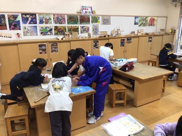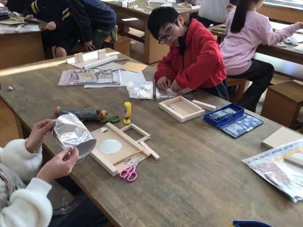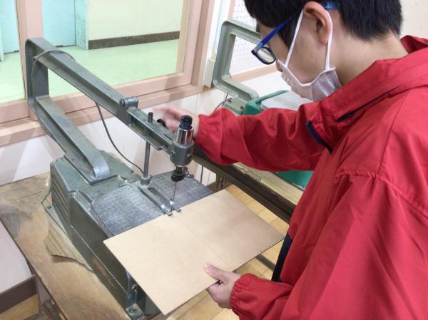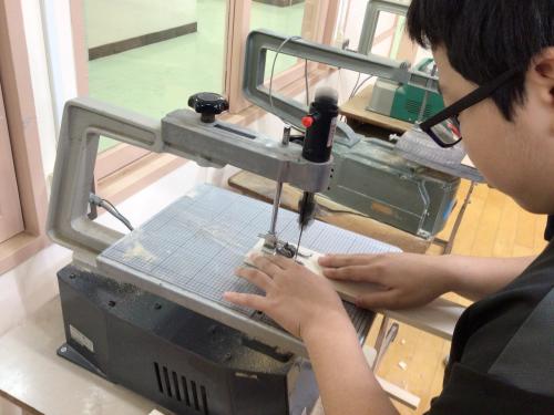 6年生は図工の「金属と木でチャレンジ」の学習で糸のこを使っています。