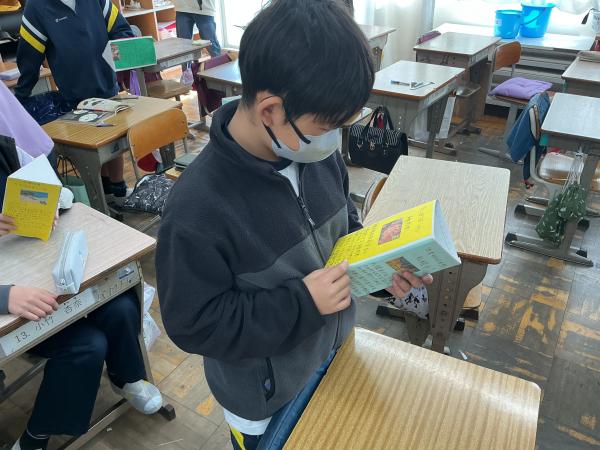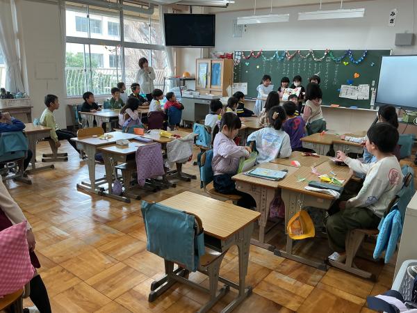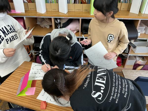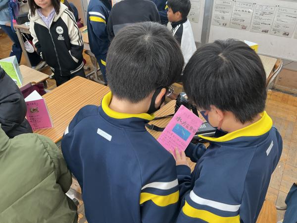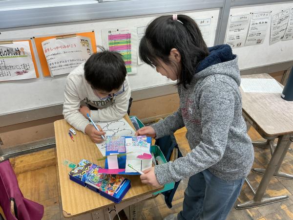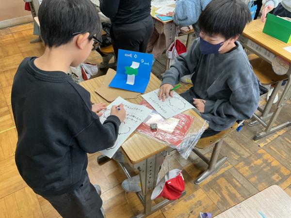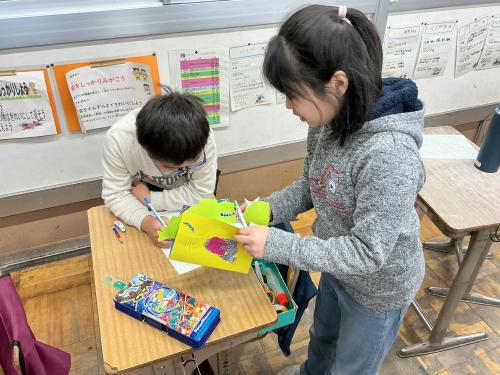 友達の机にあるカードを開いてよかったところやびっくりしたところなどをたくさん見つけました。