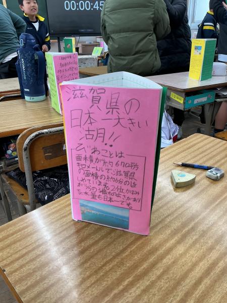 社会の学習で、各都道府県を紹介する三角ポストを作りました。
