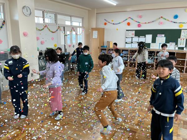 本日、1組と2組で、それぞれ「お別れパーティー」を行いました。3時間には1・2組合同で、ドッジボールと王様とりをしました。最後のクラスレクも、みんなで仲良く楽しく過ごすことができました。4年生でもみんなで協力できる学級、学年でいられることでしょう。