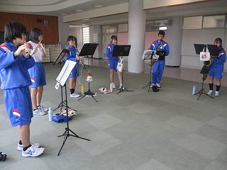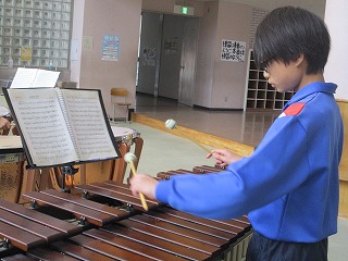 打楽器の響き、ドリーム広場に広がる ~吹奏楽部 アンサンブルコンテストに向け練習中~