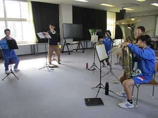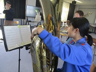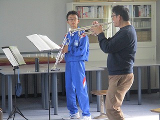 この日は、地域の吹奏楽団に所属する奏者が練習に付き添い、生徒たちに音の出し方やアンサンブルのバランスについて丁寧にアドバイスを送った。