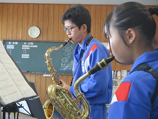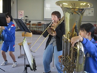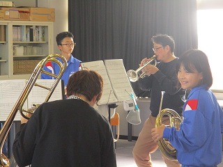 この日は、地域の吹奏楽団に所属する保護者が夫婦で来校し、
