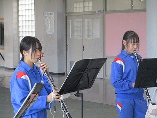 11月8日(土)11時45分、校舎3階の多目的スペースでは、吹奏楽部の木管楽器担当の部員たちが、合奏練習に取り組んでいた。