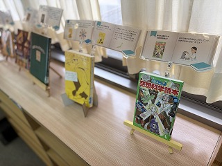 図書室には、学校司書によるユニークなテーマの新着図書コーナーが登場。
