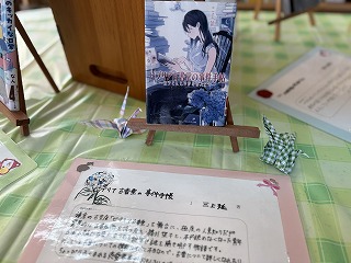 『サクラ咲く』『#真相をお話します』『世界でいちばん透きとおった物語』など、魅力的な作品が並ぶ中、『ビブリア古書堂の事件手帳』を紹介した生徒は、「鎌倉の古書店を舞台に、極度の人見知りな店主と青年が古書にまつわる謎を解き明かす物語」と書いた。