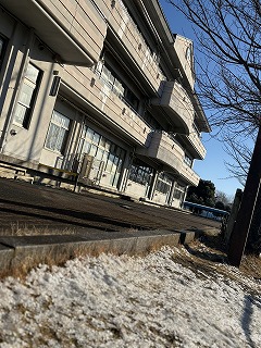 冬の柔らかな日差しが運動場に差し込む一方、吹き抜ける風は鋭く冷たい。