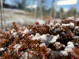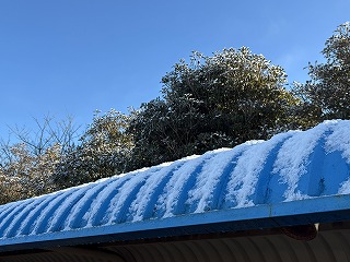 1月3日(土)朝、前夜からの雪が運動場に積もっていた。