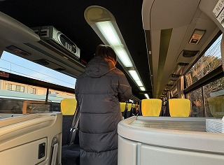 7時10分。会場へ向けてバスが出発。