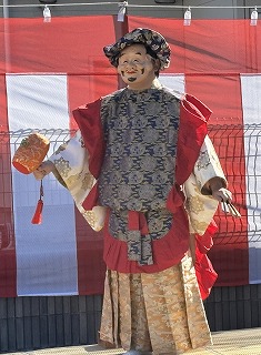 お囃子の音色に合わせて、ひょっとこやおかめが軽やかに舞い、大黒様も登場。