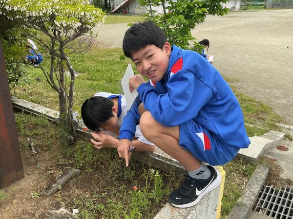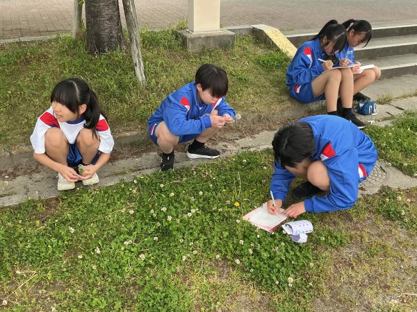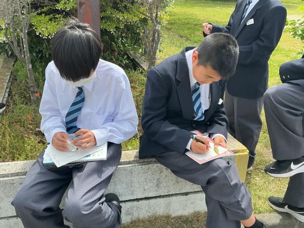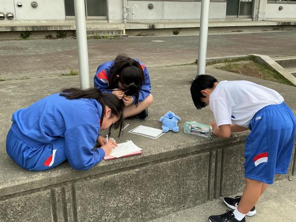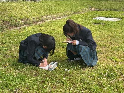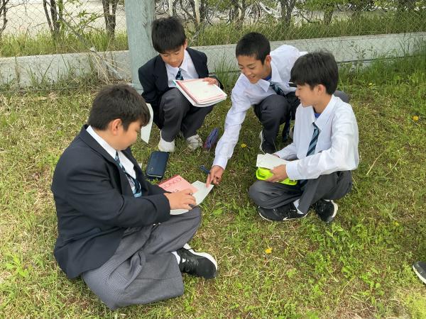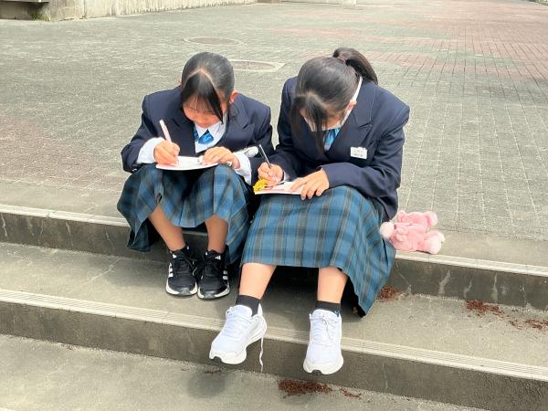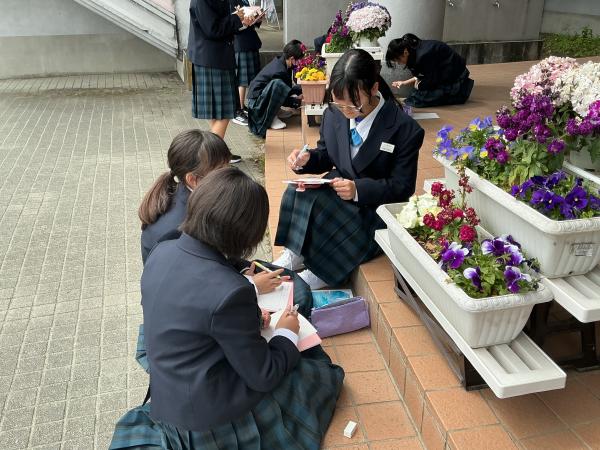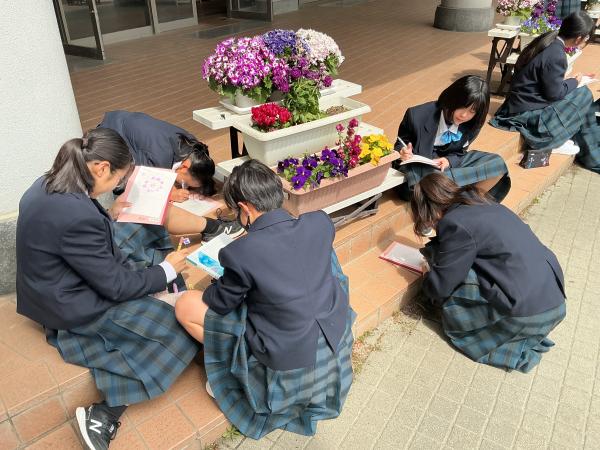 本日は土曜授業でしたが、天気も良く1年生は外に出て、生物のスケッチを行いました。