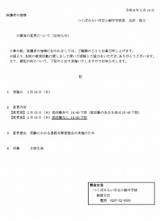 〇文書「日課等の変更について(お知らせ)」(令和8年1月14日)