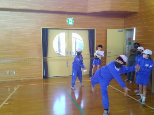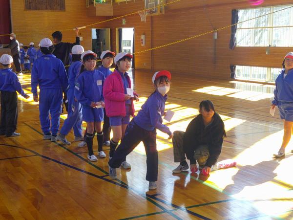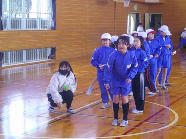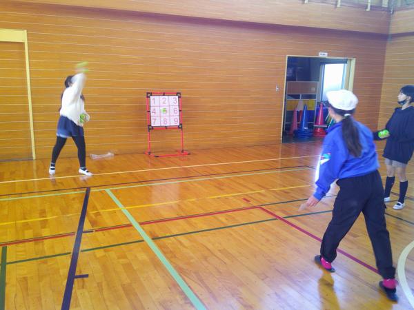 お昼休みに体育館に集合して、ボールをうまく投げるための動きを楽しみながら学習しました。