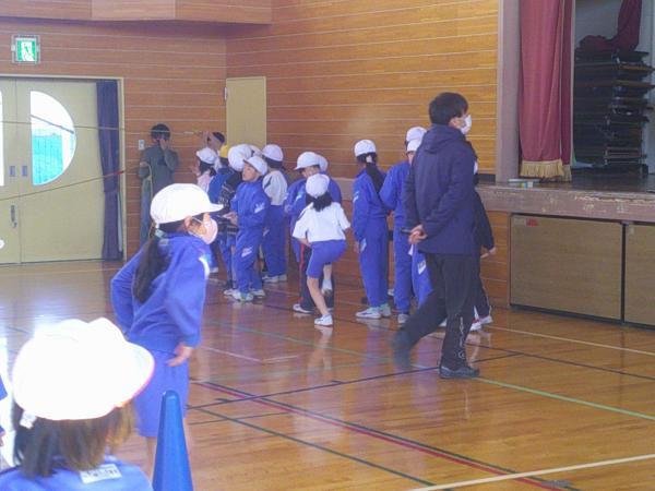 1年生が体育館で縄跳びの練習をしていました!!