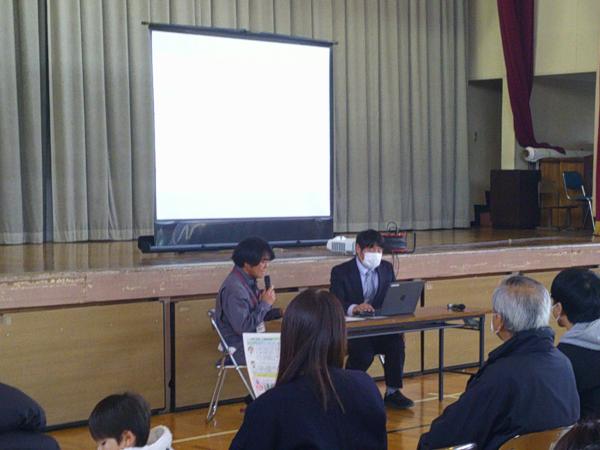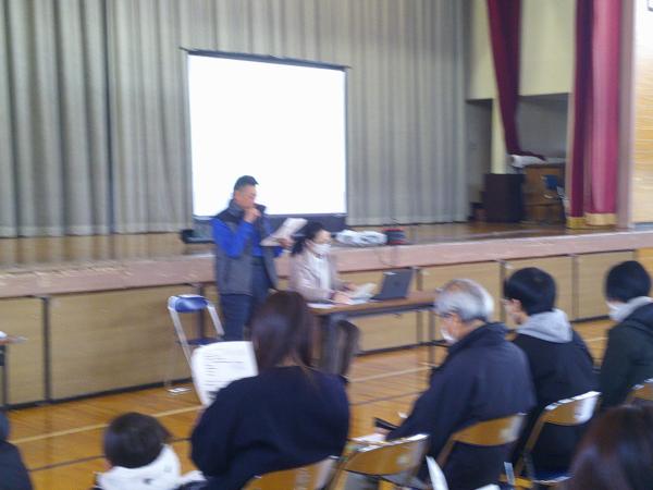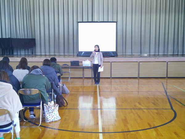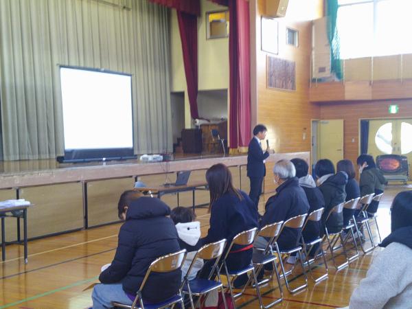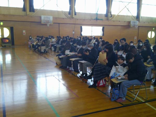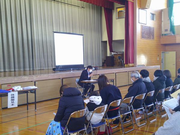来年度入学する1年生は74名です。学校経営方針や教育課程、持ち物について説明をさせていただきました。