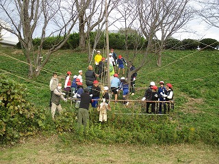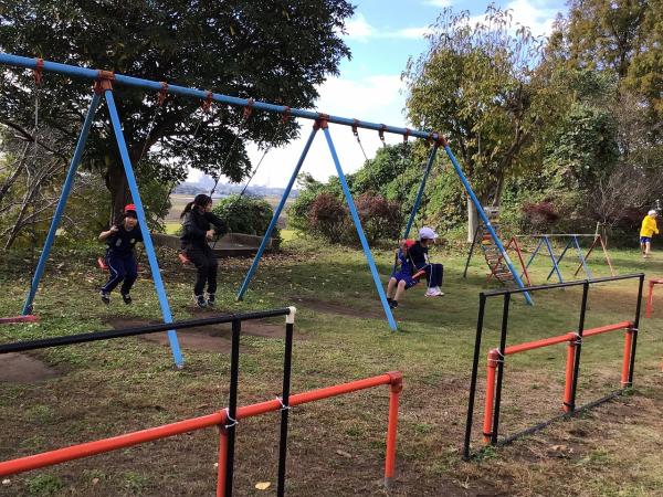 6校時、4・5・6年生は外の下グラウンドに移動し、今月22日(土)に秋祭りで披露する「綱火」の練習を行いました。綱火保存会から7名の皆様に来校いただき、指導していただきました。