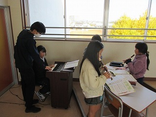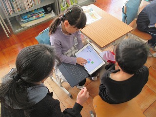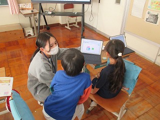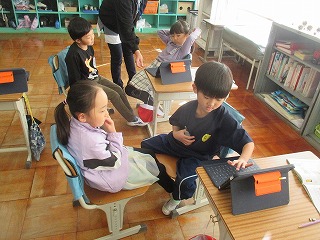 児童たちは、実際に紹介する映像の撮影に向けて、自分1人で頑張ったり、ヘルプデスクで外国語の先生にアドバイスを受けたり、ALTコーナーでALTの先生と実際に会話をしてみたり、2人組になって撮影したりして、学習していきました。どの児童も相手意識をもちながら、学習に取り組むことができました。