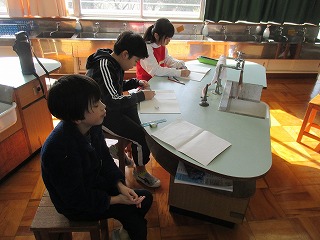 2校時、6年生は国語の学習に取り組みました。今日は「縮めた形について調べよう」というめあてを立て、学習を進めました。 児童たちは、対応する角の大きさも、対応する辺の長さの比も等しいとき、同じ形と言えることを発見し、それを縮図と表すことができることを理解していきました。 6年生の児童のみなさん、自分たちのまわりにはたくさんの縮図と拡大図になっているものがたくさんありますね。ぜひ、探してみましょう!