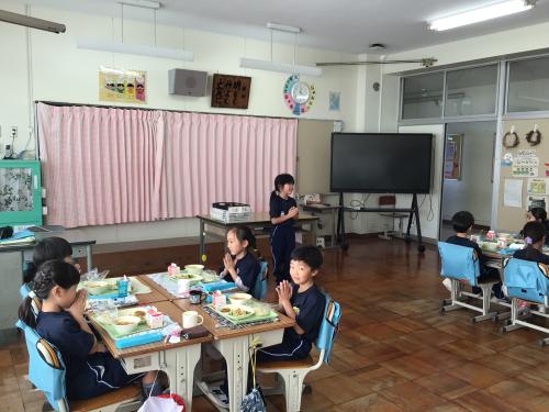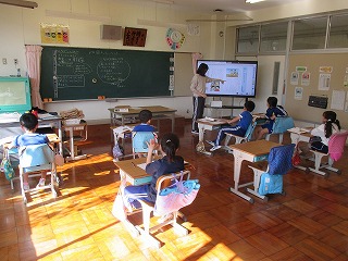 5年生では講師を招いて「みなとの大研究」という授業がありました。 コンビニのおにぎりなど、身近なものを例に輸送や流通について考える機会となりました。 児童はポイントをメモしながら話を真剣に聞いていました。