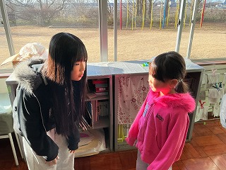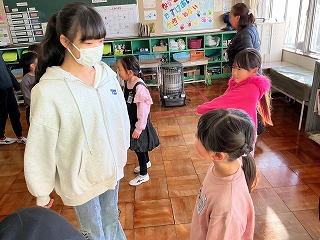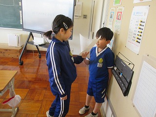 1年生と6年生が一緒に英語版「だるまさんが転んだ」をして楽しく活動しました。「OK、OK大丈夫」などと、小さな1年生に、6年生のお兄さん・お姉さんが優しく声をかる様子に、思わず笑顔があふれます。