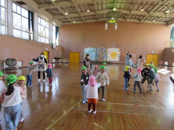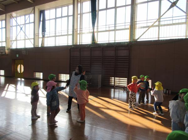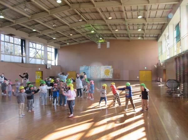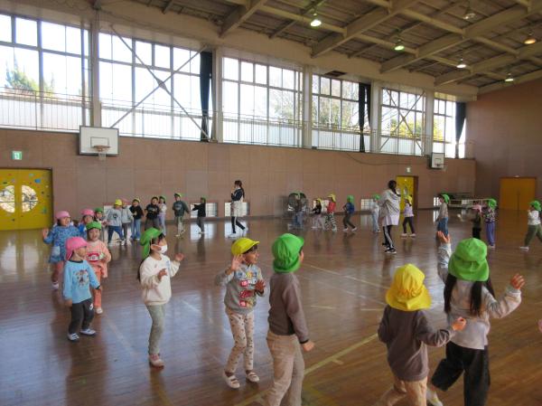 みんなで体操では、みんなで体育館に集まって踊りました🎵