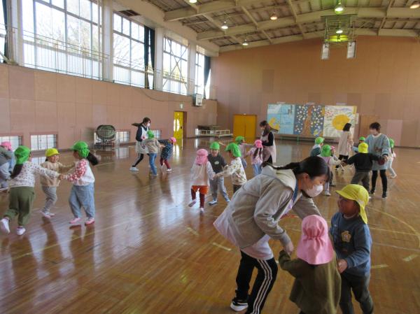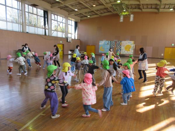 年少、年中組は手洗いについての保健指導を受けました。絵本やお話を聞いたあとに水道で実践👍『あわあわ手洗いの歌』を歌いながら、手のひらだけでなく甲や指、手首もしっかりと洗いました✨今後もしっかりと感染症予防をしていきます。その後はリズム遊びや集団ゲームを行いました。体のいろいろなところを使って様々な動物になりきりました🐰🐢上手にできると、お互いに褒め合う姿が見られました😊✌最後は大根抜きゲーム🎶抜く方も抜かれる方も力いっぱい‼とっても盛り上がりました😄