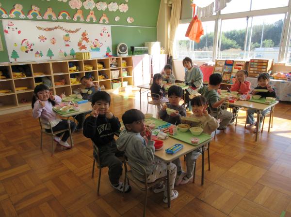 たくさん遊んで掃除して、お腹がペコペコ・・・なんと今日は、クリスマス給食🎄朝から楽しみにしていたこども達😋