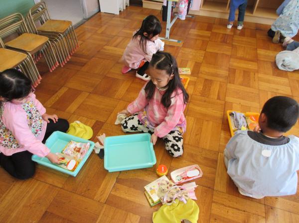 室内で一緒に自由遊びをしたり、集団遊びを楽しんだりしています😊