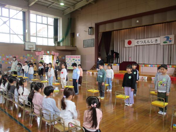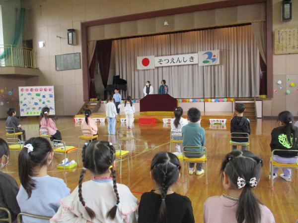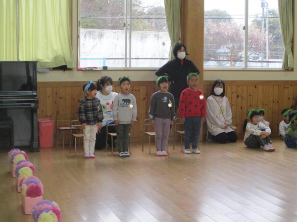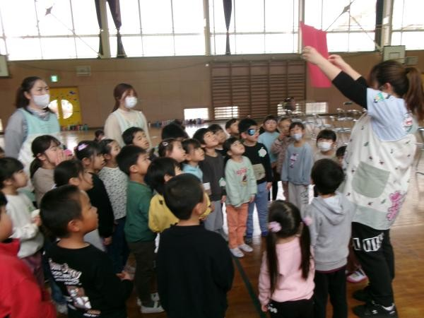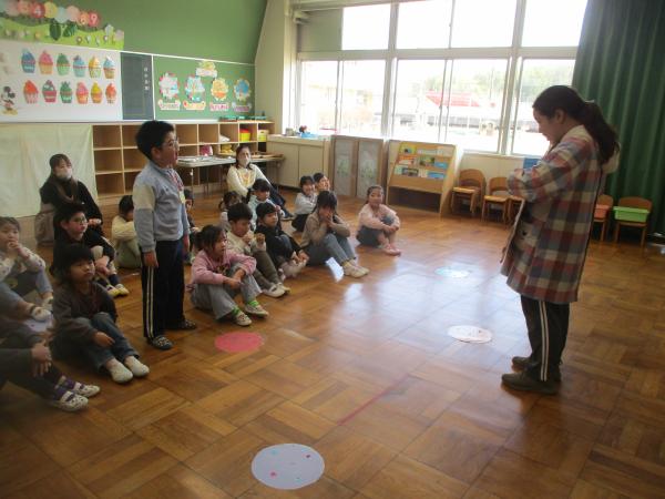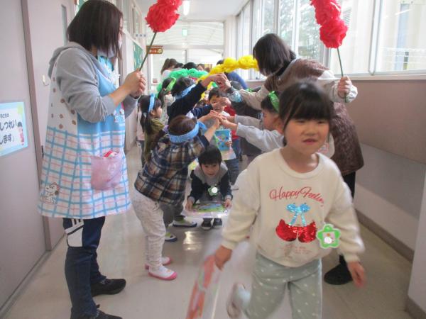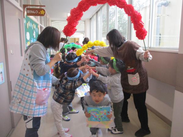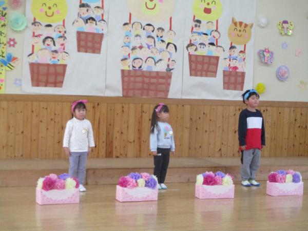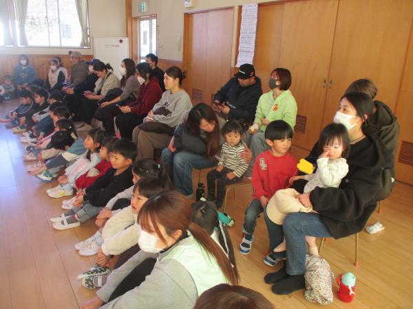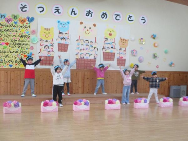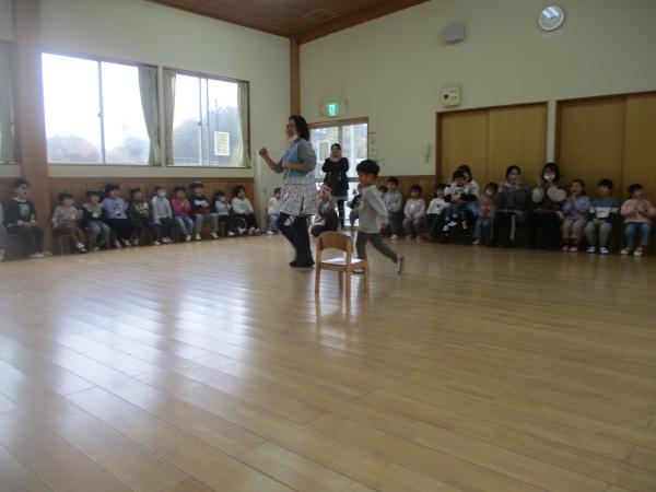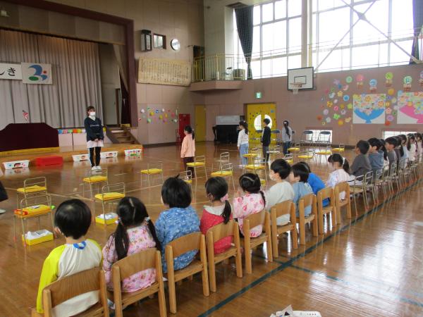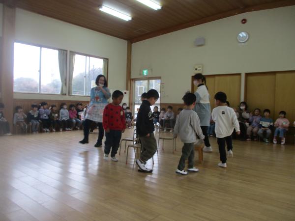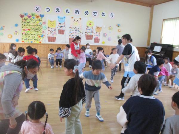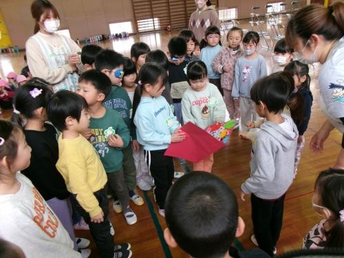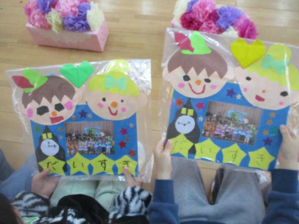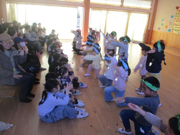 この日を迎えるまでに年少さん、年中さんが秘密の準備をたくさんしてくれました😊今日はついに年長さんをご招待する日です🥰「喜んでくれるかな?」とドキドキワクワクでスタート✨司会進行は年中さんです!年少、年中さんからの出し物はダンス“ハピネスメドレー”🎶大好きとありがとうの気持ちをいっぱい込めて披露しました😊💗年長さんは感謝の気持ちを込めて歌「ずっといっしょ」を聴かせてくれました✨素敵な歌声に、成長の嬉しさとお別れの寂しさを感じました😭年中さんは素敵な写真たてのプレゼントもしてくれました✨互いを思い合う姿に、一人一人の大きな成長をたくさん感じることのできた素敵な会でした😌会終了後は、全学年でいす取りゲーム&フルーツバスケットを楽しみました😄🎶