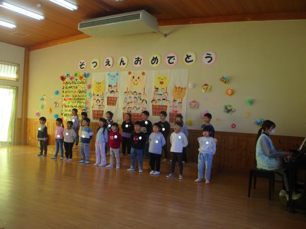 掃除後に感謝の気持ちを込めて、こども達からお別れ会の遊戯と思い出の歌を発表しました💓