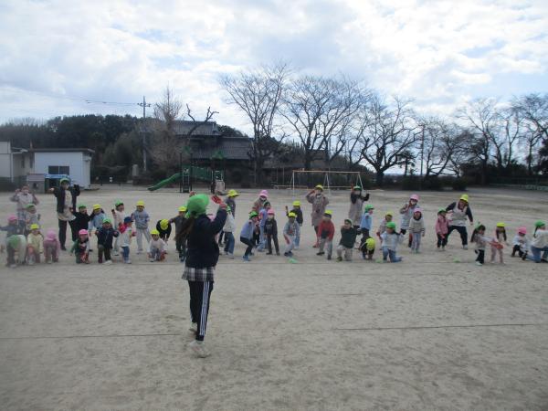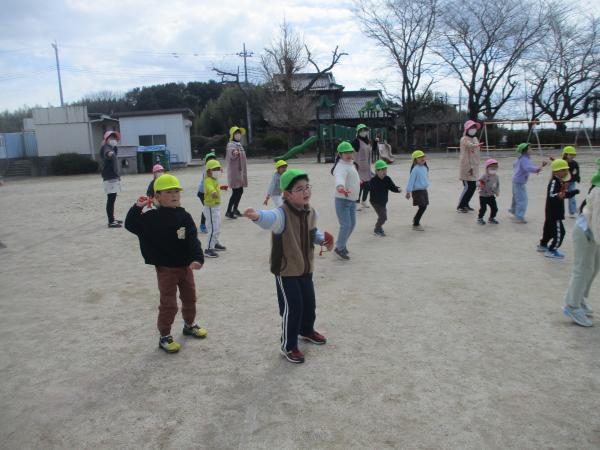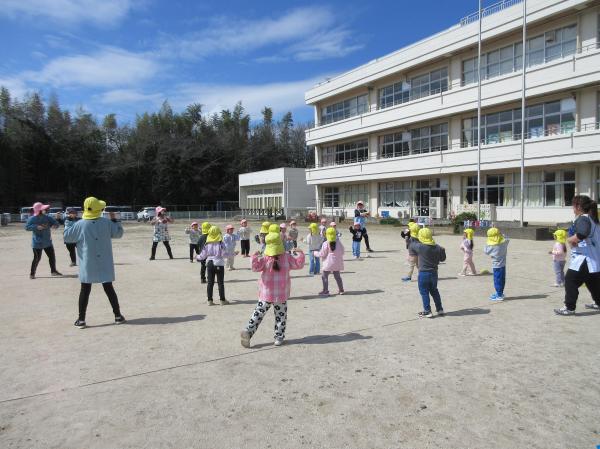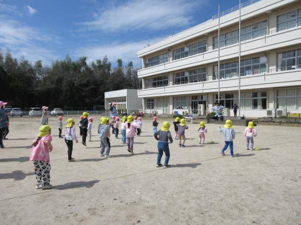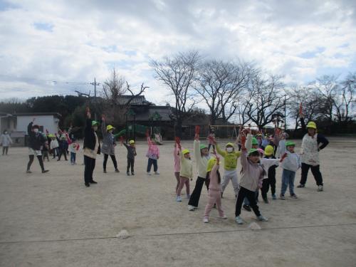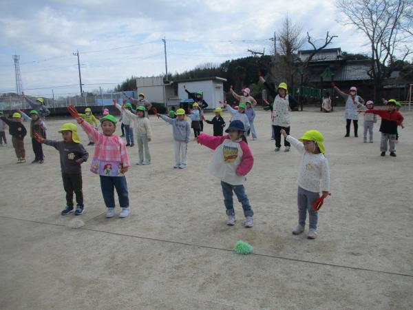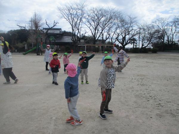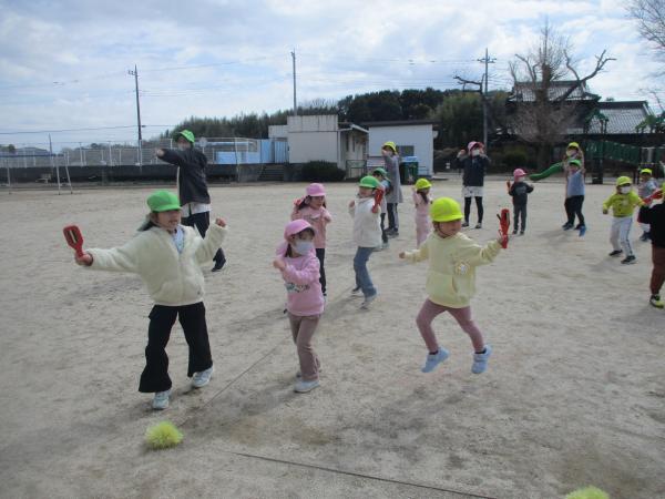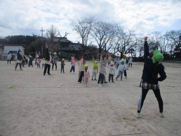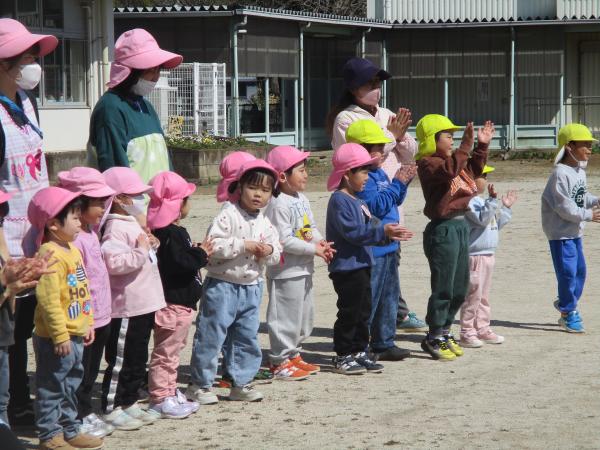 みんなで体操では年長さんが3年間、運動会で踊ったお遊戯メドレーをしました😊アンダーザシー💕GO FOR IT‼🎵クスシキ✨どれも懐かしいですね☺クスシキは、年少さんや年中さんも憧れの鳴子をもって、年長さんを真似しながら鳴らしたり隊形移動をしたりしました😆こうやってみんなで踊る日も今日が最後です😢