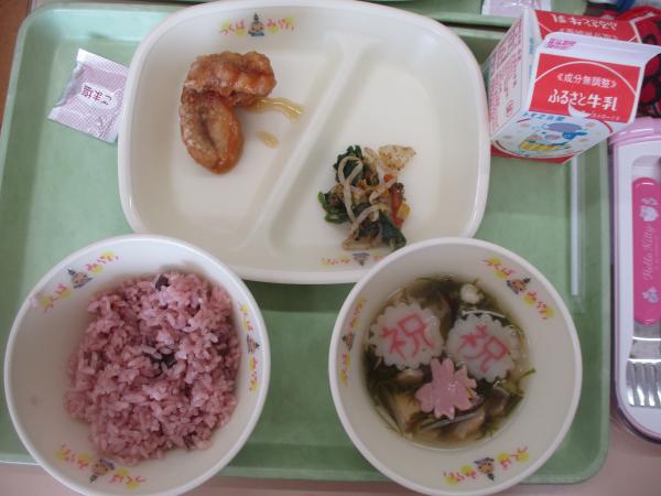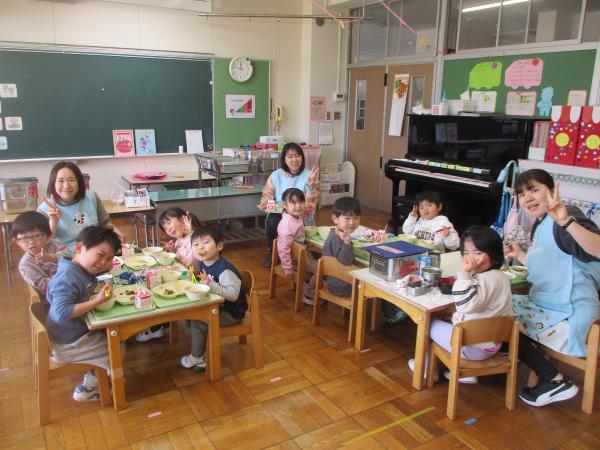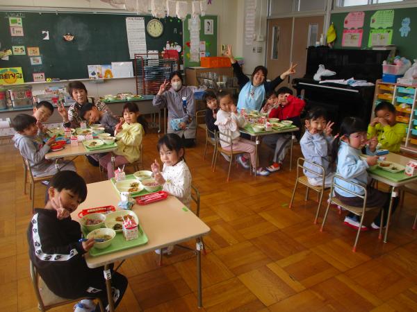 給食は卒園のお祝い献立でした🍚鶏肉のレモン煮は大人気で、みんな最初にがぶり!とかじりついていました😋