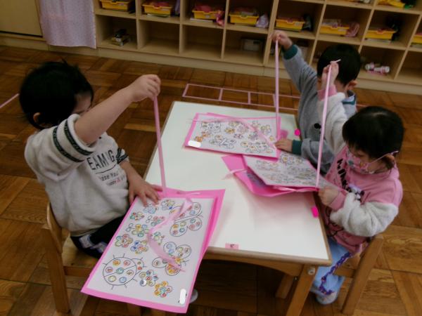3/10 思い出綴じ&春の壁面製作&給食当番🎵(年中組)
