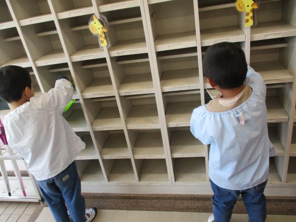 ロッカーの名前のシールをはがしたり、靴箱やロッカーを雑巾で拭いたりと、1年使ったお部屋のお掃除を頑張りました💕