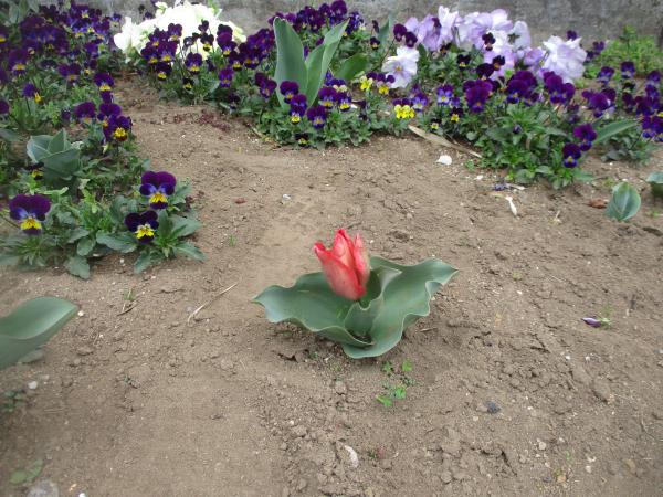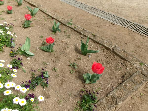 みんなが冬に植えたチューリップが少しづつ咲きはじめました🌷