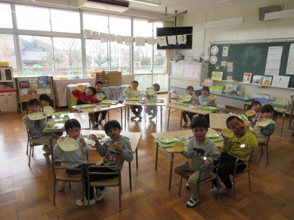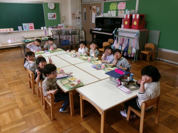 もも組さんとしての最後の給食では、入園した頃よりもたくさん食べる姿が見られました🥰